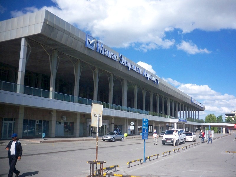 Аэропорт Бишкек-Манас. Вид с привокзальной площади. Московское время 12:52, местное время 15:52.