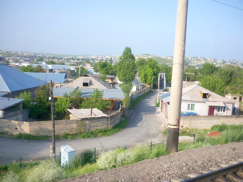 Окраина огромного хаотично разросшегося Чимкента. Вид из вагона. Время 8:23.