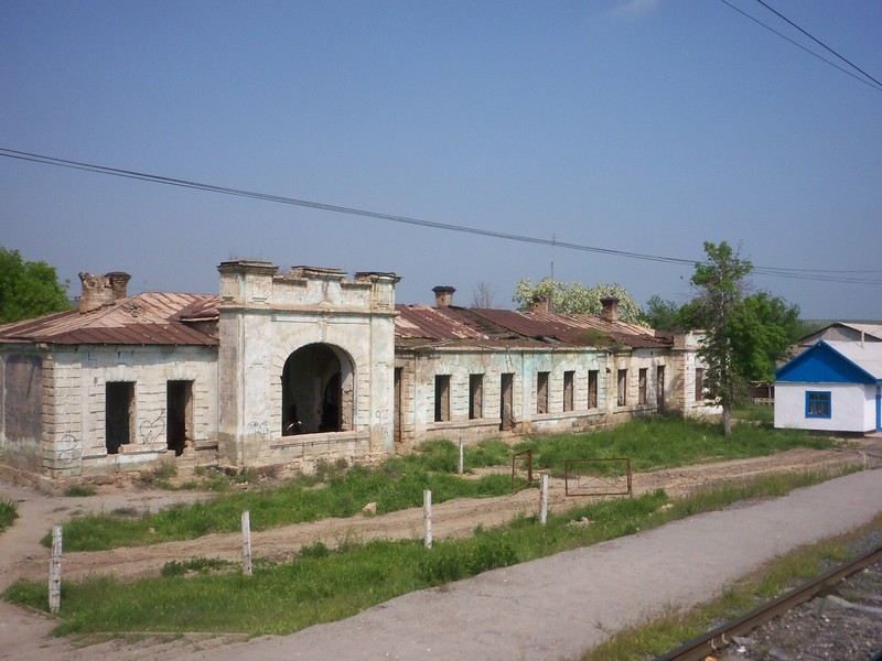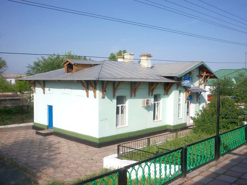 Вокзал дореволюционной постройки на станции Арысь. Время 10:13.
