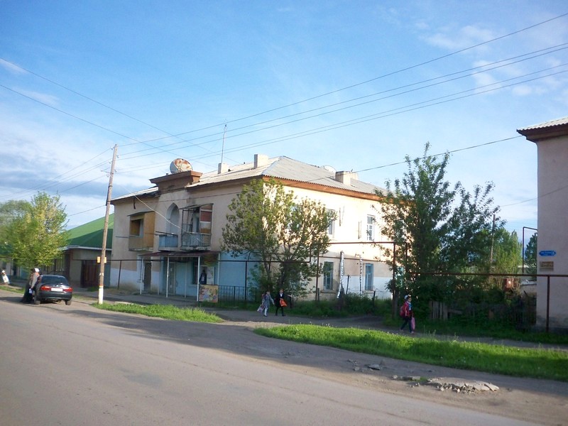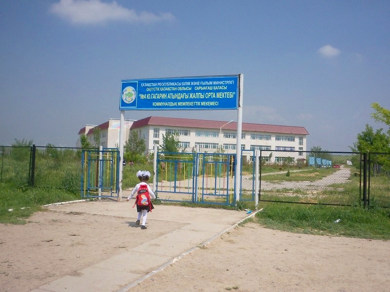 Окраина города Сарыагач. Средняя школа №4 имени Гагарина. Время 13:59.