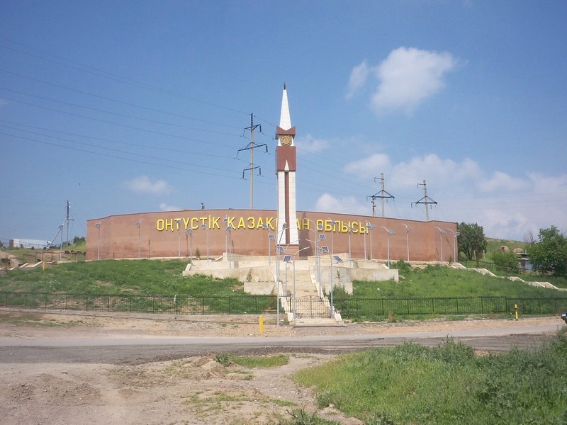 Окрестности пункта пропуска "Черняевка". Композиция, символизирующая начало Южно-Казахстанской области. Время 14:38.