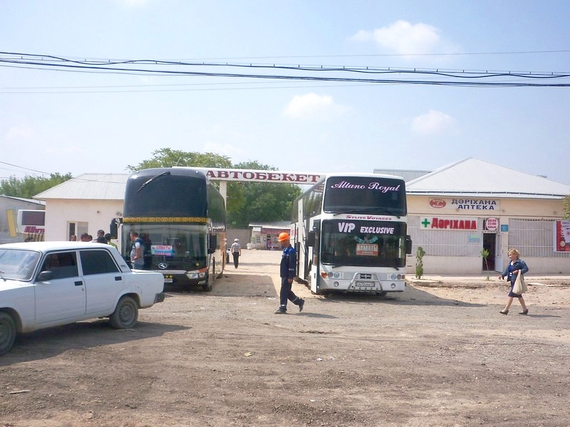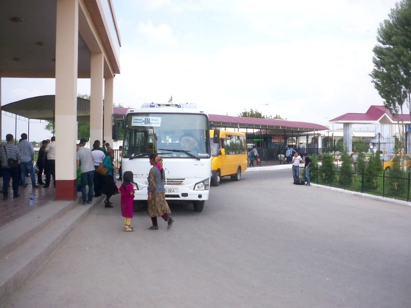 Непосредственно у ворот узбекского пункта пропуска стоят автобусы на Ташкент, но ждать отправления пришлось бы весьма долго. Лучше пройти несколько сотен метров вперёд, появятся часто курсирующие "маршрутки".
