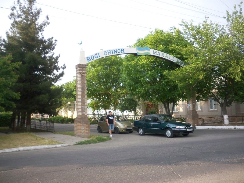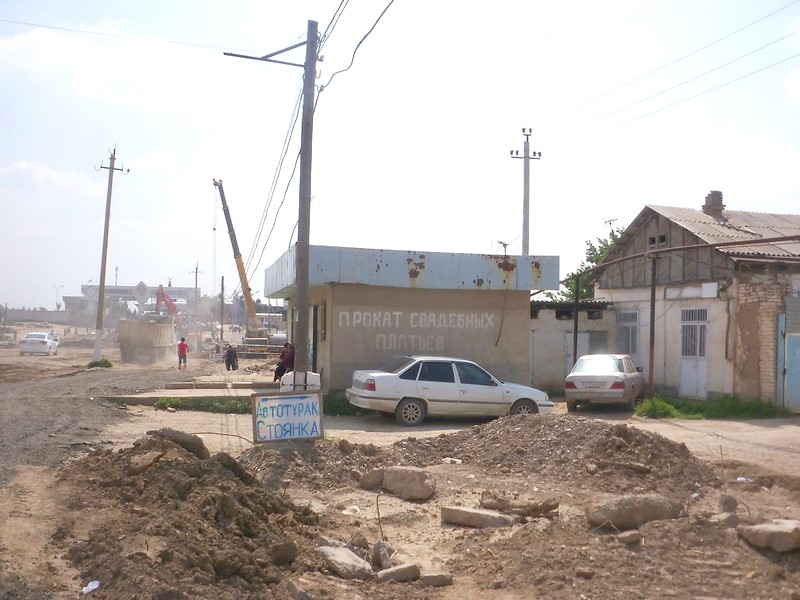 Обе стороны пограничного перехода остались позади. Узбекистан, место отправления автобусов на Ташкент. Время 15:26.