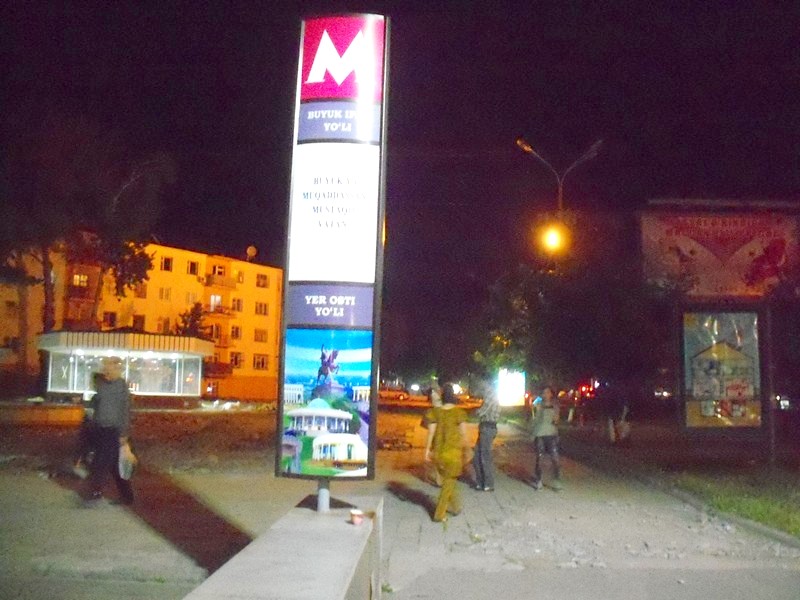 Площадь у конечной станции метро "Буюк ипак йули", которую продолжают называть "Максим Горький". Время 22:09.