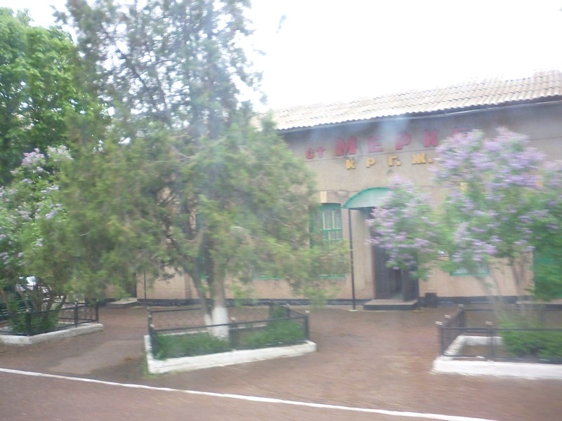 Казахстанская станция Мерке, принадлежащая Киргизской железной дороге. Время 17:19.