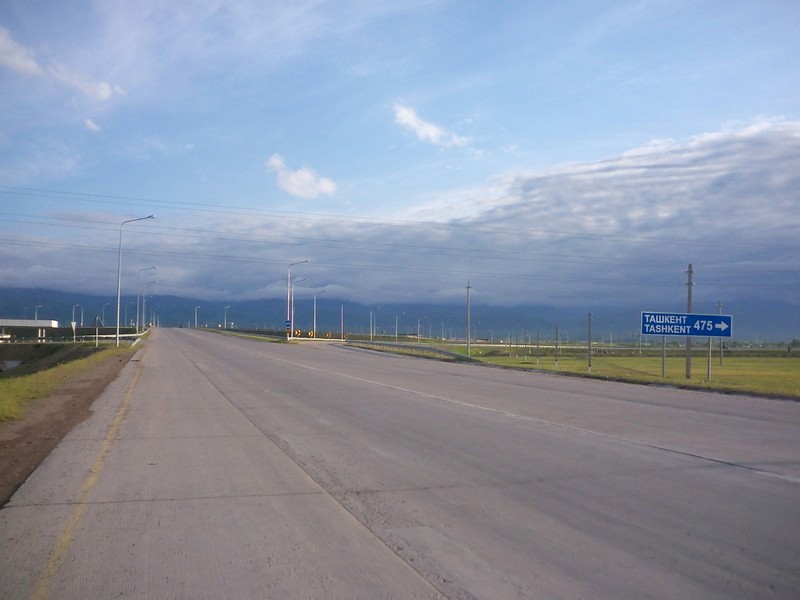 Указатель на Ташкент. На самом деле автомобильный путь туда будет на 170 километров длиннее - требуется заезд в Ялламу.