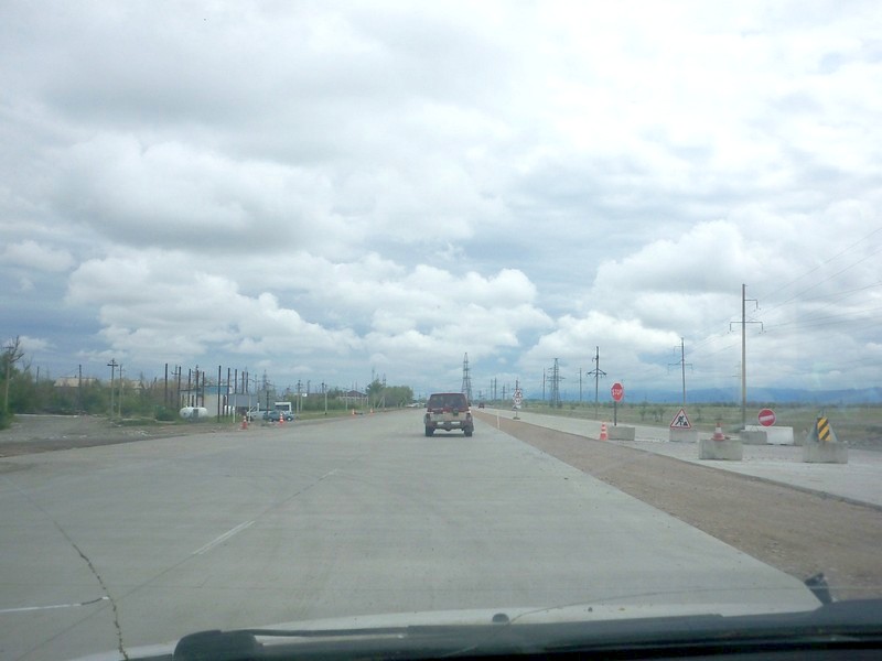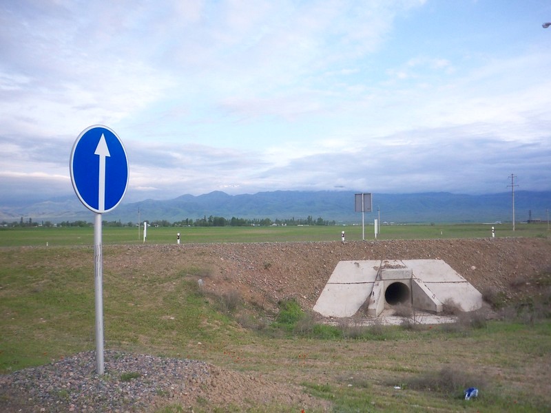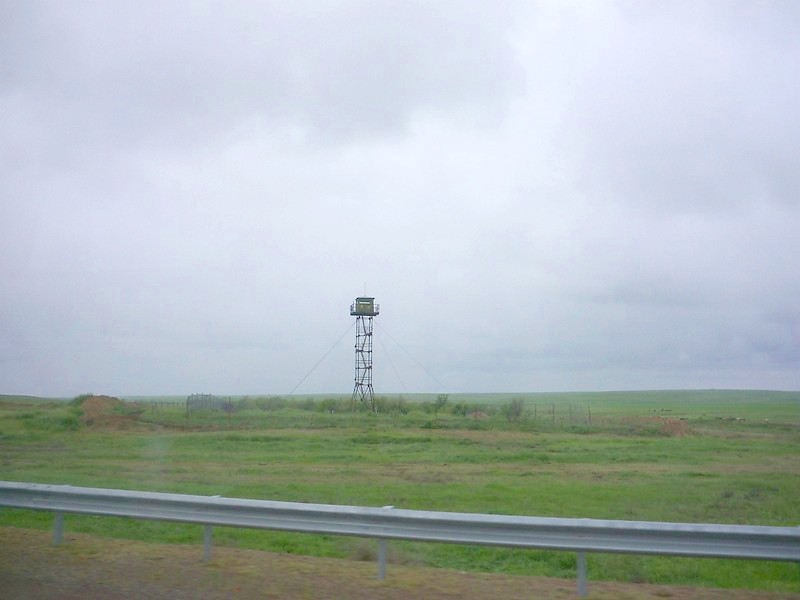 Справа от дороги местами почти вплотную находится казахско-кыргызская граница с колючей проволокой и вышками. Время 11:25.