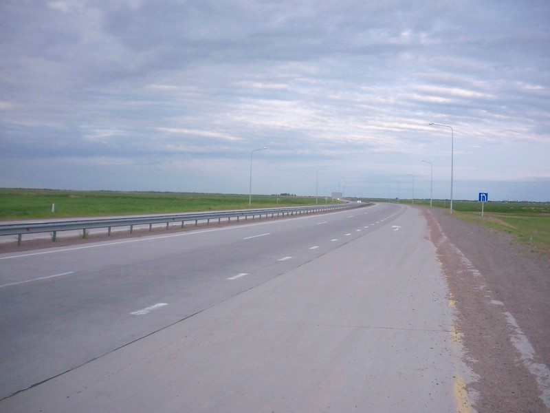 На протяжении десятков километров дорога выглядит так: полоска асфальта среди