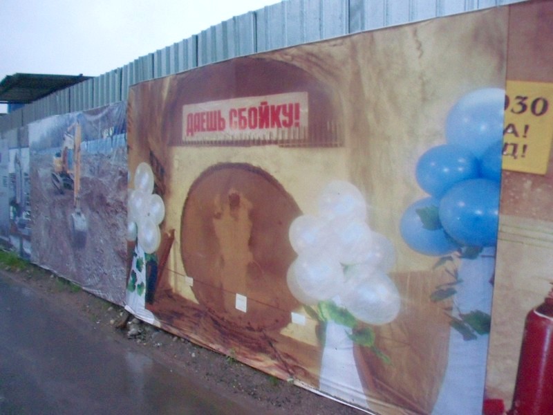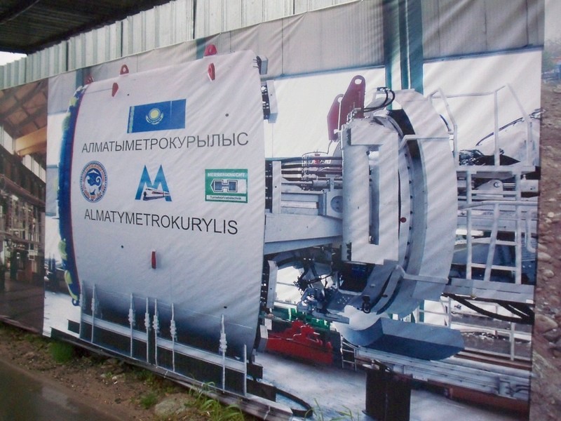 Ограждение стройплощадки метрополитена. Изображён проходческий щит "Алматыметростроя".