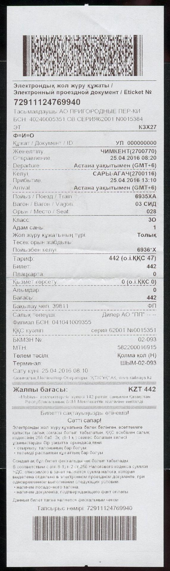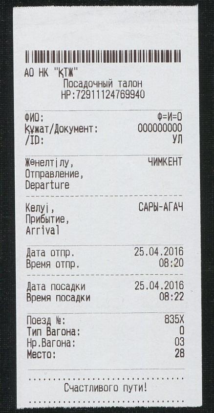 В такую позорную ерунду превратились билеты дальнего следования в казахстанских вокзальных кассах. Нормальные билеты, а не это позорище, в Казахстане выдают коммерческие кассы.