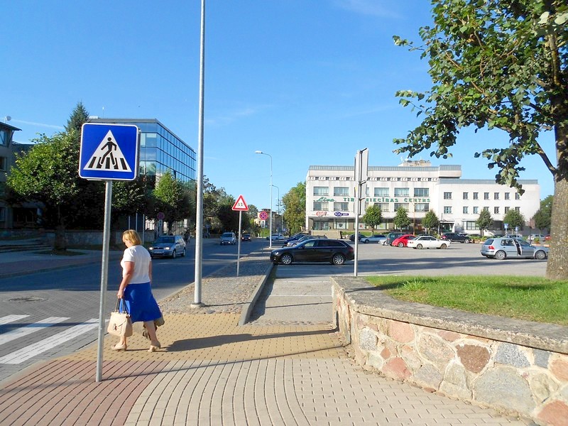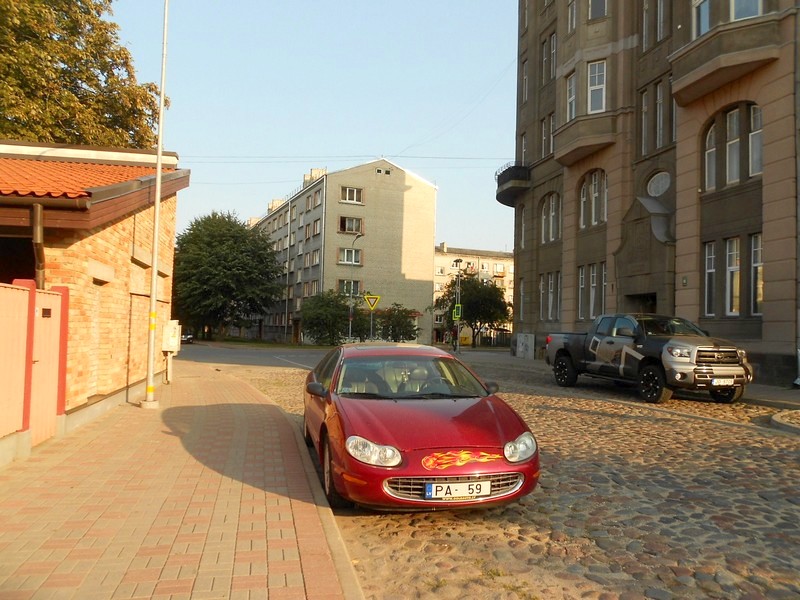 Центр города Лиепая. В Латвии допустимы автомобильные номера из двух букв и двух цифр, за дополнительные