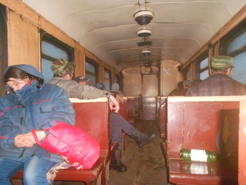 В вагоне рабочего поезда сообщением 2-й участок - Центральный Посёлок.