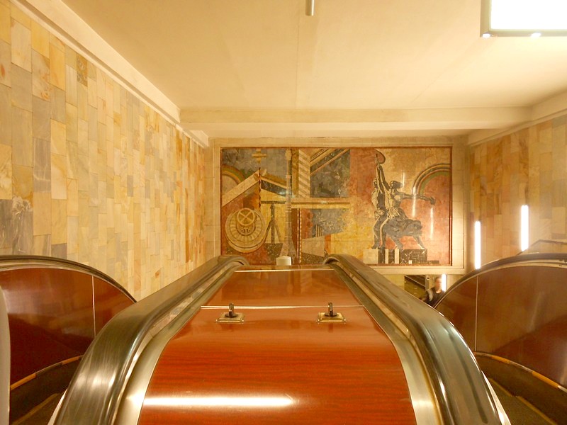 была единственной станцией с эскалаторами.