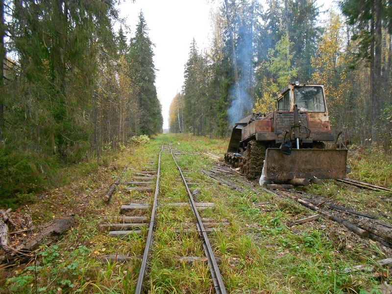 Между тем, узкоколейная железная дорога огромная. Около ста километров! И всё это - для редких охотников. Лес не возят ориентировочно с 2012 года. И возить никогда не будут. Ни одного тепловоза нет, если не считать обломки. Памятная мне диспетчерская стоит, но разграблена.