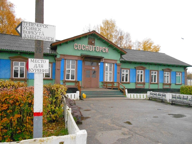 Сосногорск. Я был уверен, что деревянный вокзал эпохи строительства Печорской магистрали, памятный по поездкам 1997 года и 2000 года - давно снесён. Оказывается, нет, он "живее всех живых"!