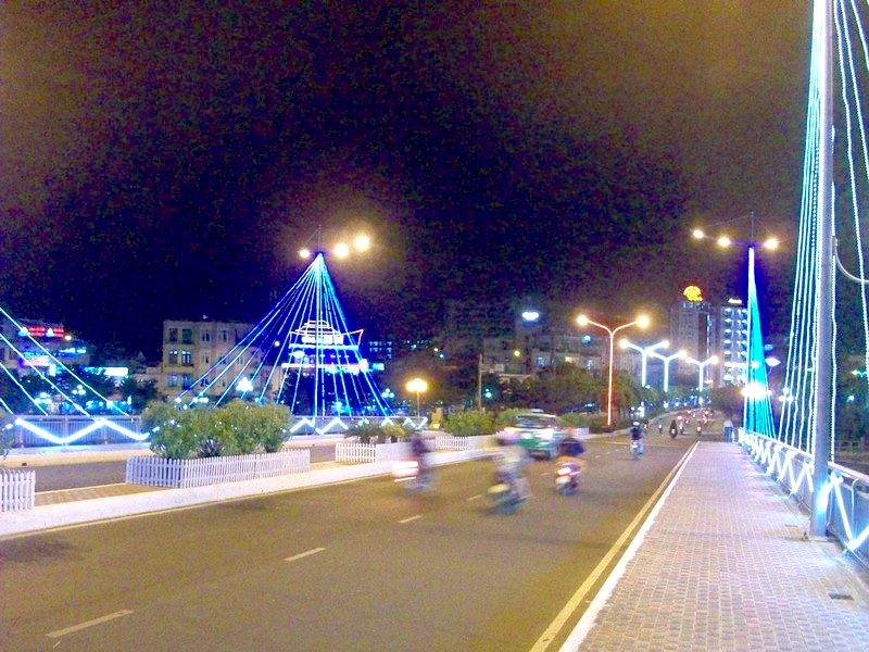 Нячанг. За этим мостом с названием Tran Phu небольшая туристическая «резервация» заканчивается. Время 18:55.