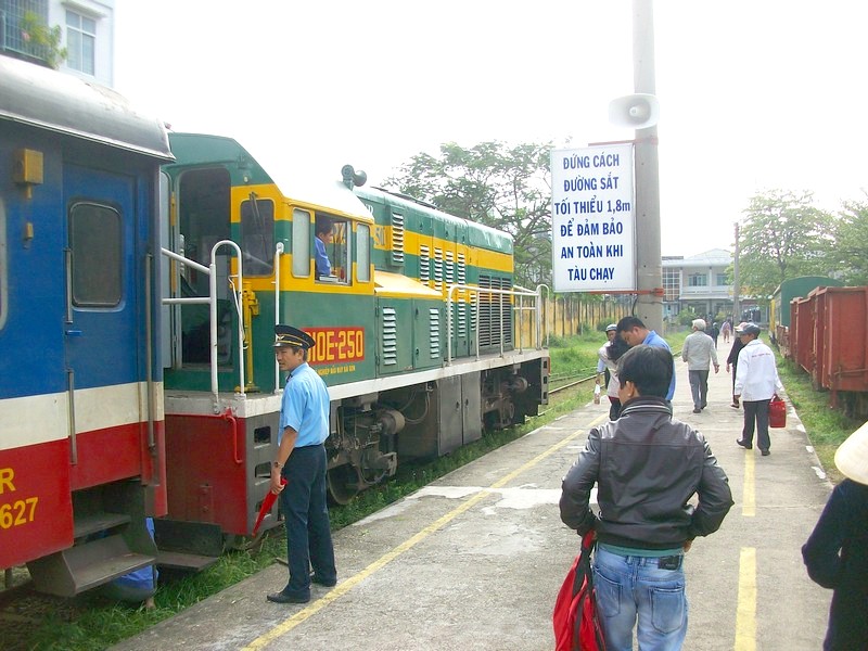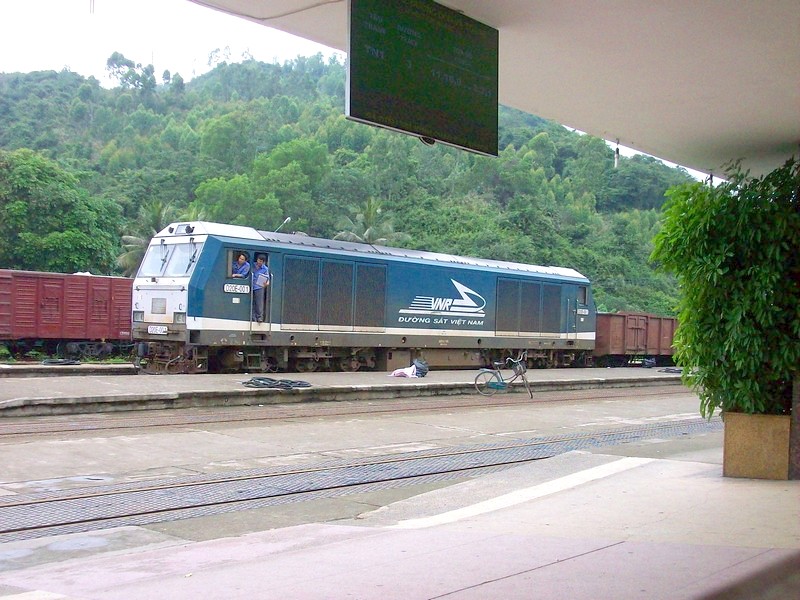 Вот и «мой» поезд Сайгон — Ханой, которым предстоит ехать до географического центра Трансвьетнамской магистрали — станции Da Nang. Локомотивом оказался не «старик», переживший Войну за объединение, а новый тепловоз китайской постройки D19E-934. Такие тепловозы строились Китаем по заказу Вьетнама с 2003 по 2012 год, их насчитывается 80.