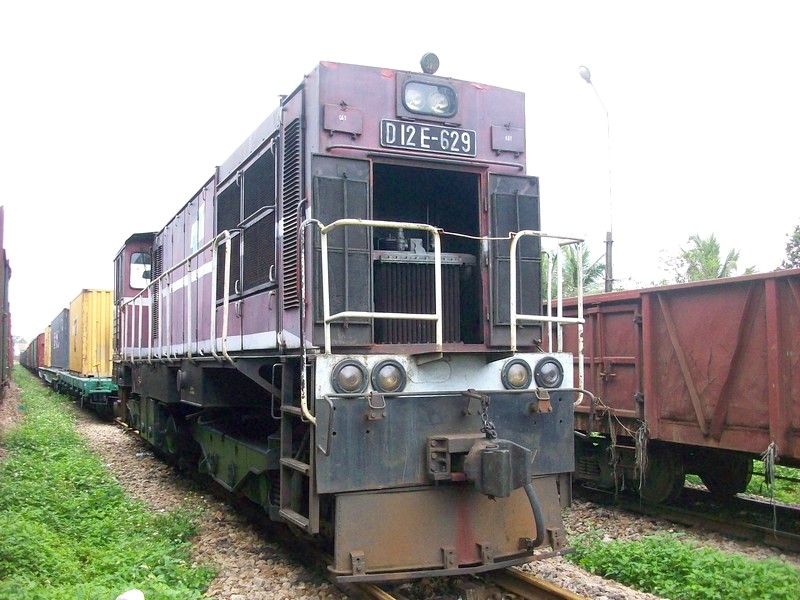 Тепловоз D12E-629 на станции Dieu Tri. Построен в Чехословакии специально для железных дорог Вьетнама. Время 13:15.