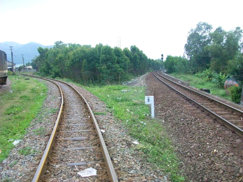 Вот и главная Трансвьетнамская магистраль — железная дорога, важная в глобальном масштабе, которая обозначена на любой карте мира. Выглядит не сильно «мощнее», чем ветвь на Куинён — однако здесь уже совсем другой объём движения.