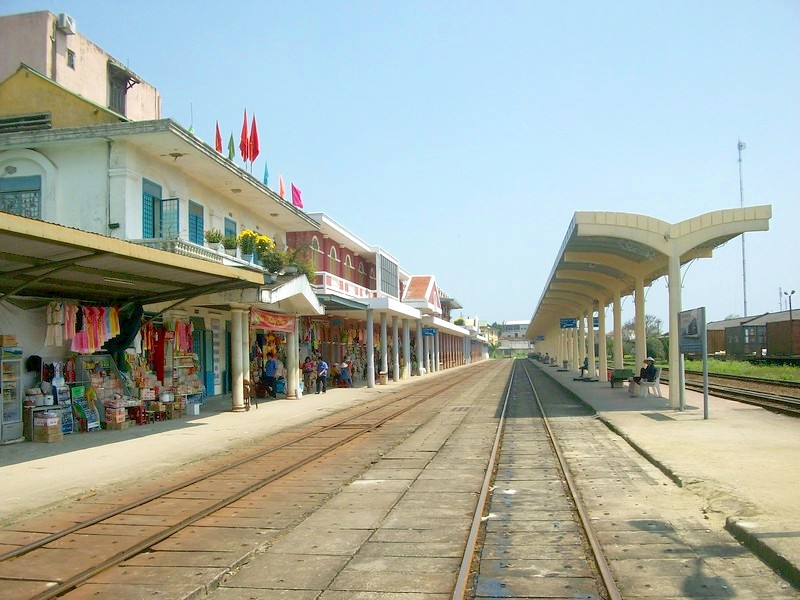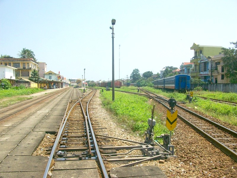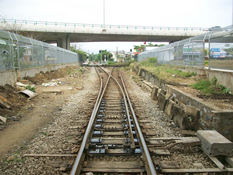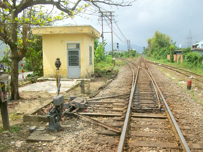 Путевое развитие к западу от вокзала в виде станции Thanh Khe. Это — ещё не «главная стрелка», на которой