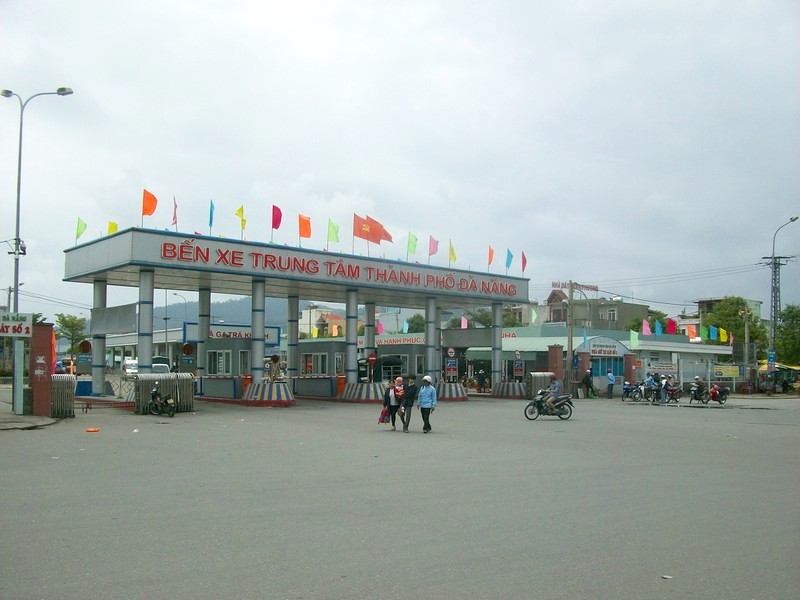 Въезд на территорию автовокзала в Дананге. Время 11:30.