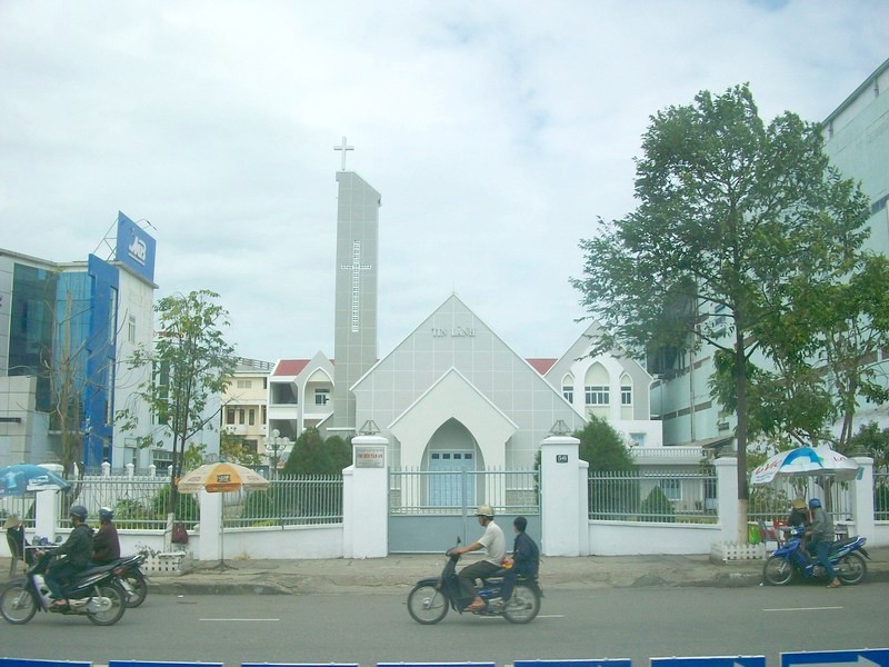 Движение в автобусе на Хойан. Христианский храм в Дананге. Время 12:02.