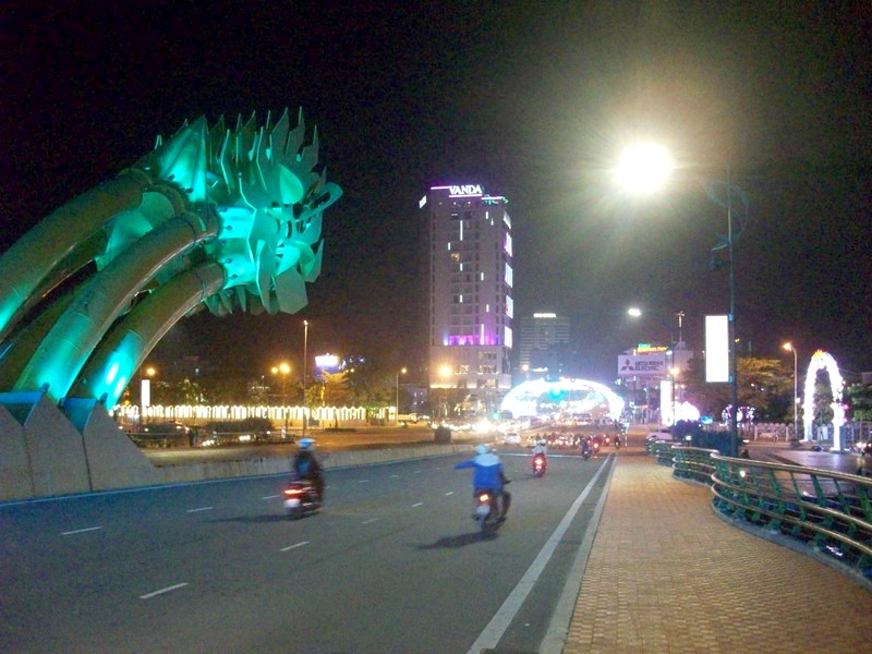 «Мост Дракона» в Дананге. Вид в сторону центра города. Время 19:16.