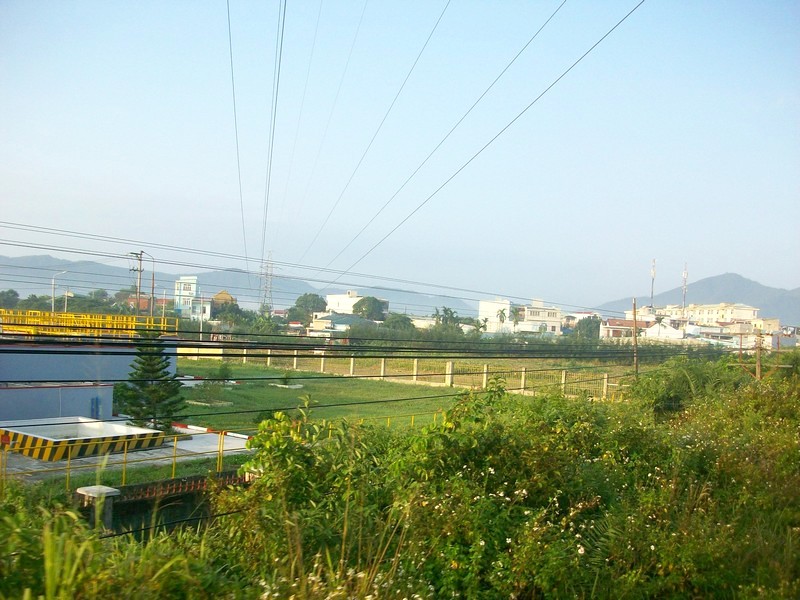 Дананг остаётся позади. Вид из вагона на запад, в сторону гор. Время 6:50.