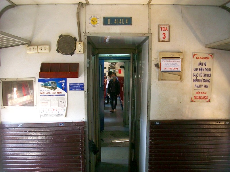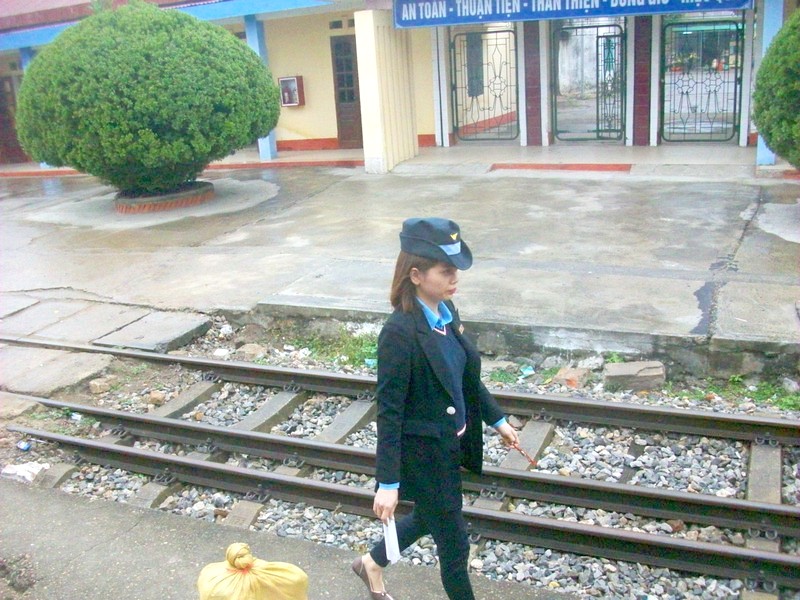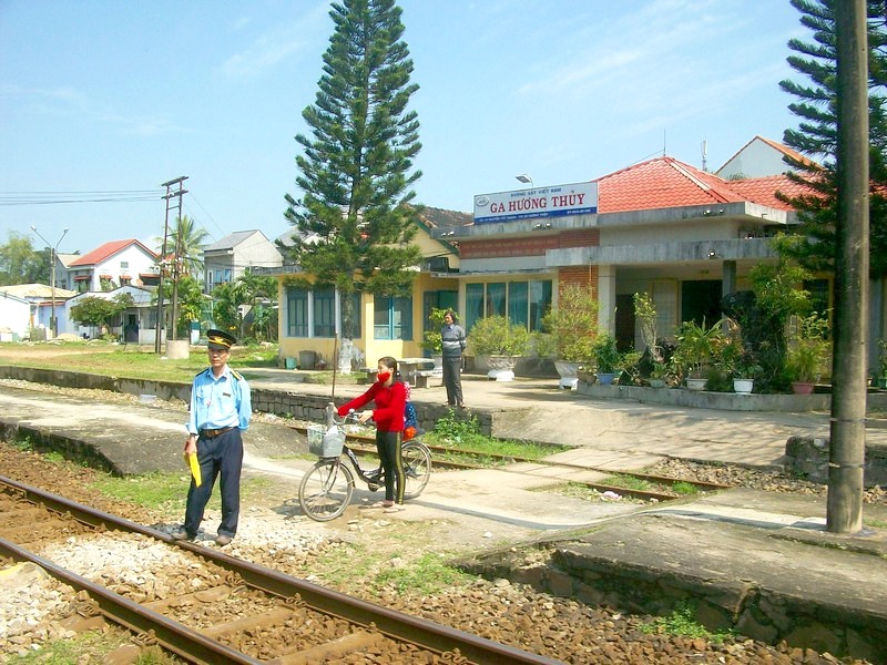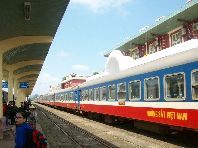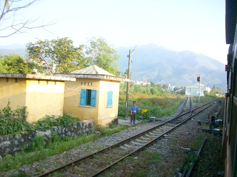 Маршрут до станции Quan Trieu (Куанчиеу) короткий, 74 километра. На маршруте две пары поездов в сутки. По нашим понятиям, это был бы пригородный поезд. Но во Вьетнаме деления поездов на пригородные и дальние нет. Билеты всегда по документам, всегда именные и с указанием места. В поезде никто не спрашивает документ и, что особенно радует, не требует придерживаться определённого места.