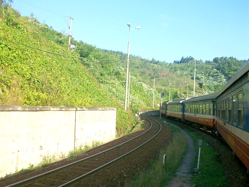 На станции Yen Vien поезд отклоняется от главной магистрали в сторону Наньнина и Москвы на линию, ведущую в северо-западный «угол» Вьетнама — в Лаокай. А вскоре, на станции Dong Anh, покидает и «лаокайскую» линию, «забираясь» на малодеятельный участок.