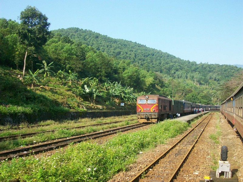 Станция Lang Co. Тепловоз D11H-331 в хвосте пассажирского поезда южного направления. По причине