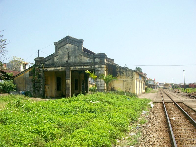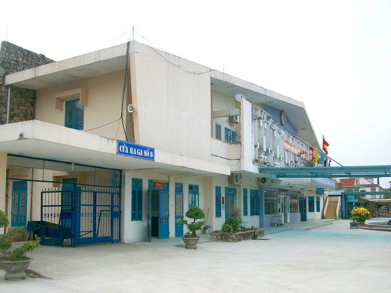 Станция Thanh Khe, станционное здание. Остановки пассажирских поездов здесь нет. Время 11:05.
