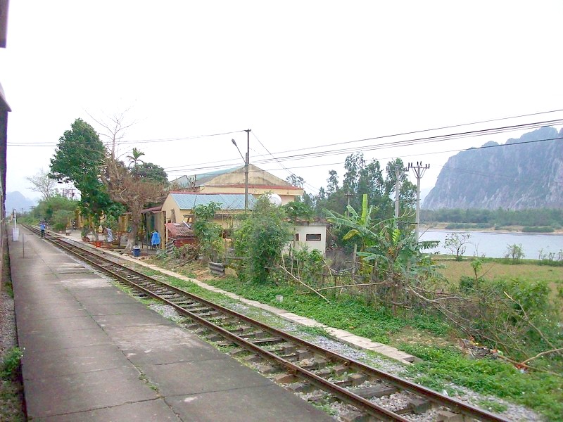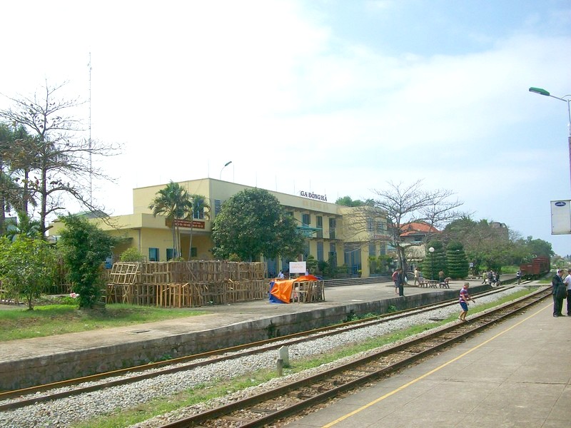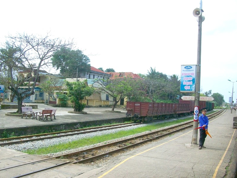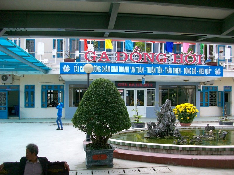 Поезд прибывает на станцию Dong Hoi. Здесь — длительная стоянка и смена локомотивных бригад. Время 15:08.