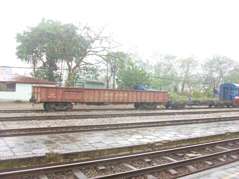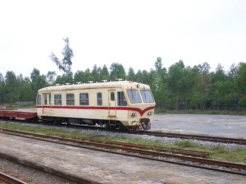 Отправились со станции Dong Hoi. Старый пассажирский вагон в составе служебного поезда.