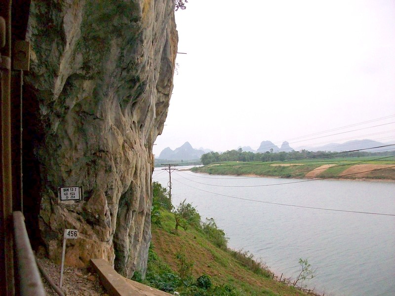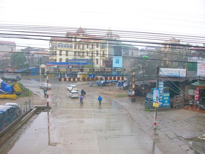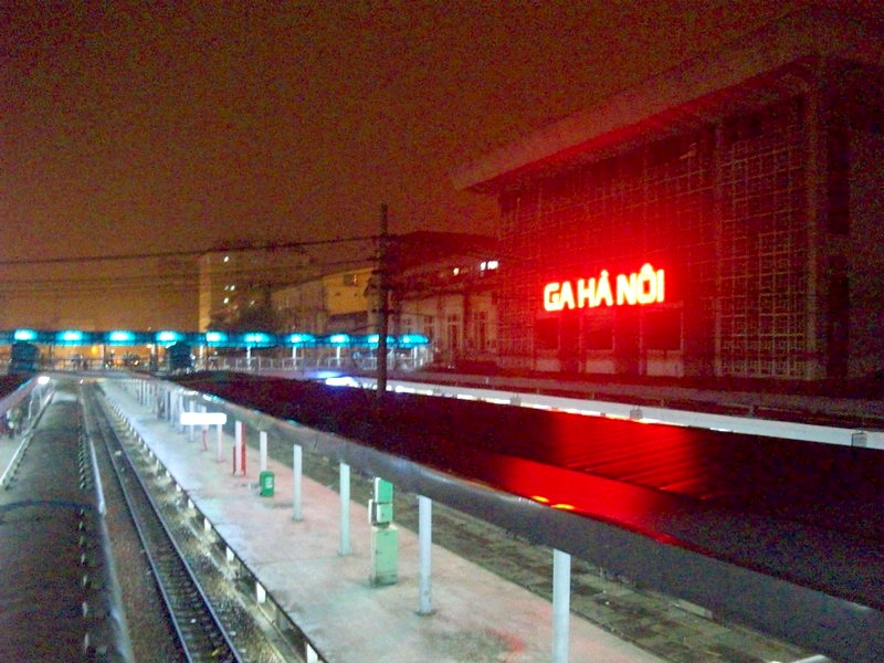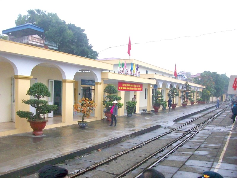 В дождливом тумане поезд пересёк известный мост через Красную реку, который когда-то упорно бомбили американцы. Вскоре — станция Gia Lam, «международные ворота» столицы. Здесь появляются пути колеи 1435 мм, приходящие из Китая. Есть полноценный вокзал.