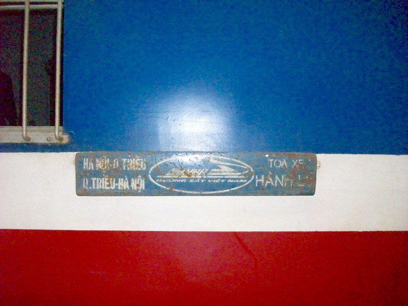Маршрутная доска на вагоне поезда до Quan Trieu. Нестандартный для железной дороги Вьетнама