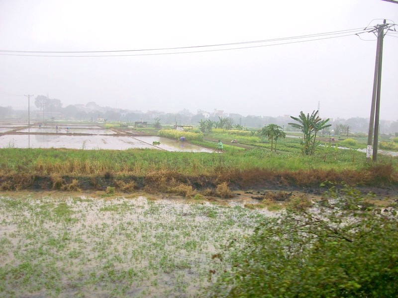 Рисовые поля почти внутри Ханоя. Время 8:52.
