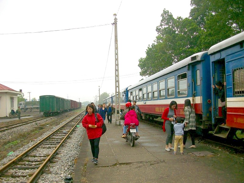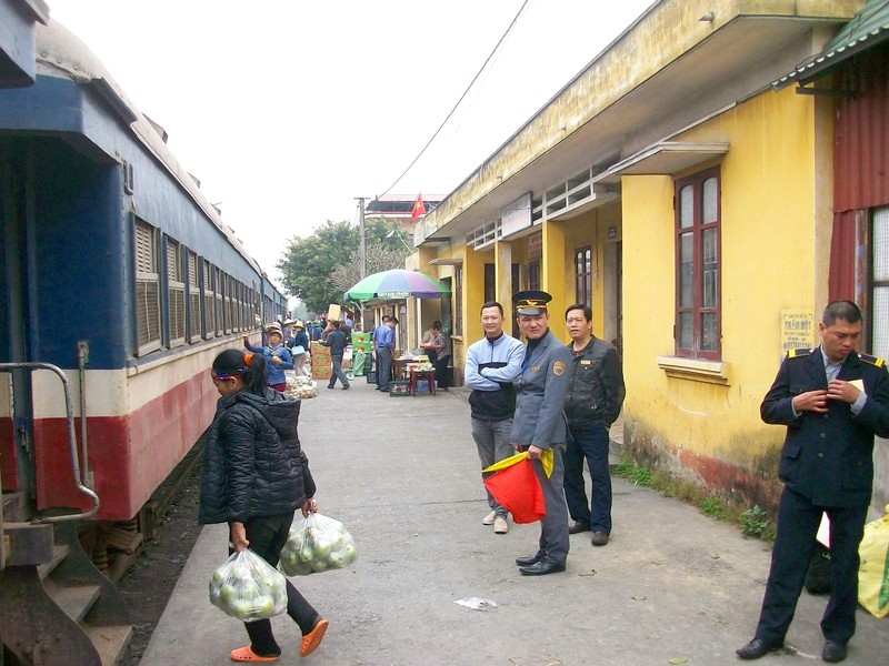 Поезд сообщением Yen Vien — Ha Long прибыл на станцию Kep. Здесь — длительная стоянка,
