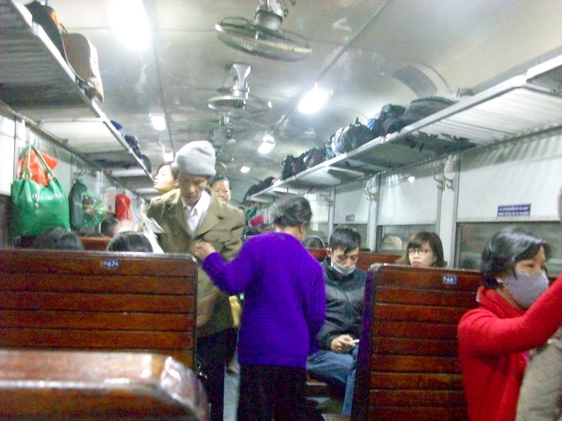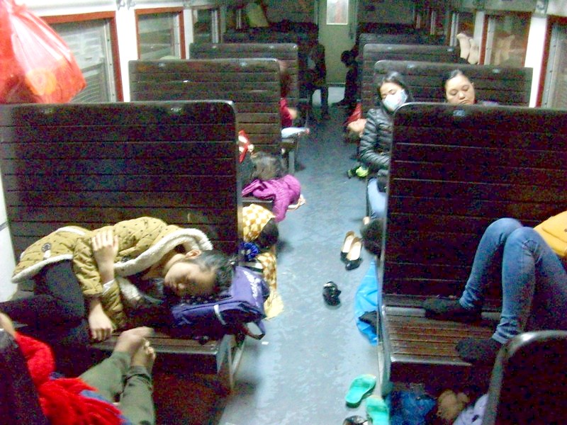 В вагоне поезда сообщением Yen Vien — Ha Long. Время 4:45.