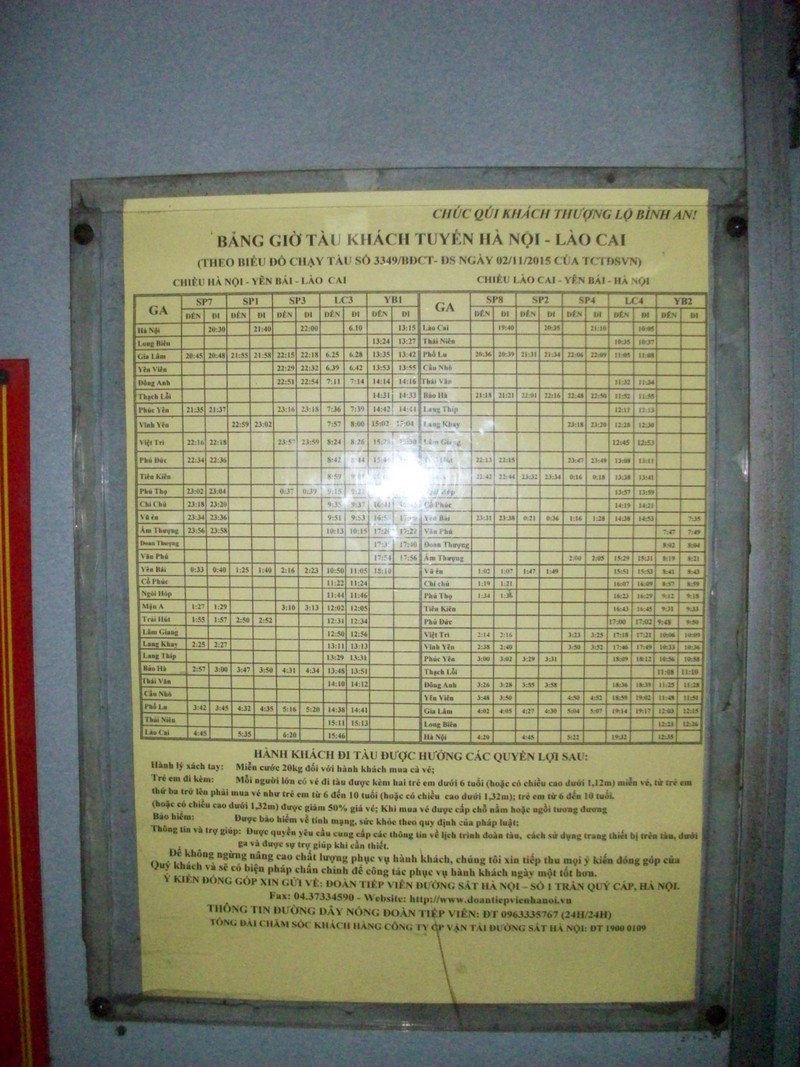 Вокзал на станции Yen Vien. Информация о стоимости проезда в поездах, в вагонах разных категорий.