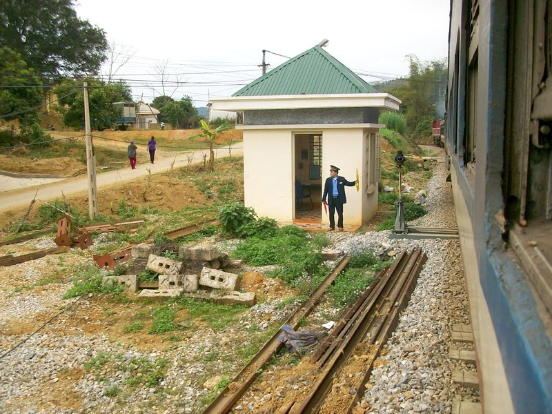 Станция Trung Gia. Как видно, здесь используется электрожезловая система. Время 9:30.