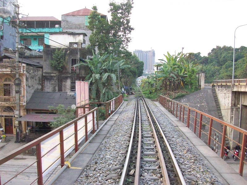 Впереди — станция Quan Trieu. Вид с севера в сторону Ханоя. Время 12:05.