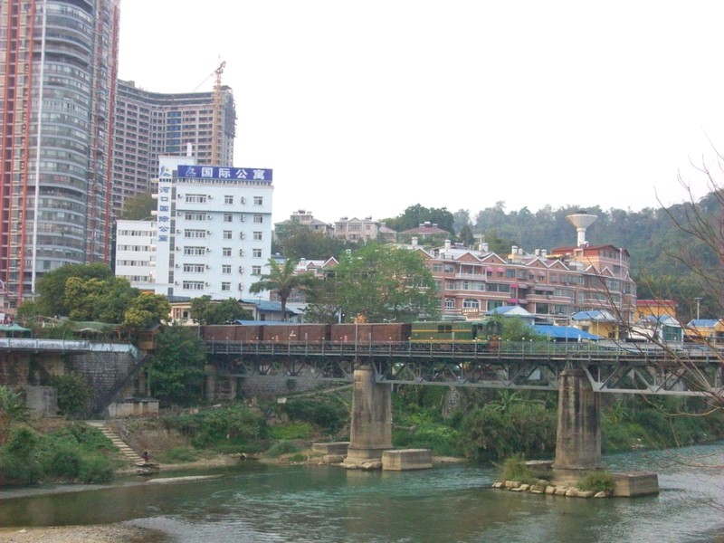 Но оказалось, что нет! Железная дорога колеи 1000 мм продолжается ещё на сотни километров в глубину Китая, и закончится только в большом городе Куньмин — центре провинции Юннань. Причём это, скорее всего, единственная в Китае железная дорога такой колеи.
