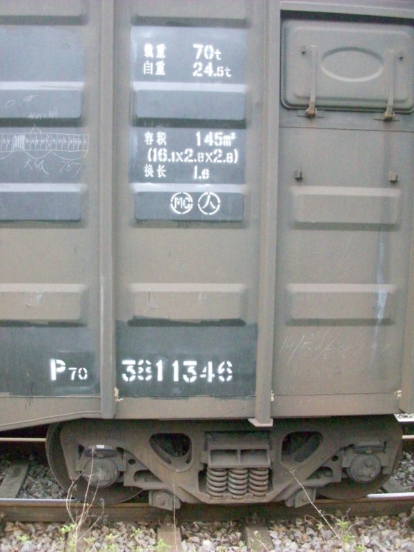 Технические надписи на китайском вагоне — предсказуемо по-китайски.
