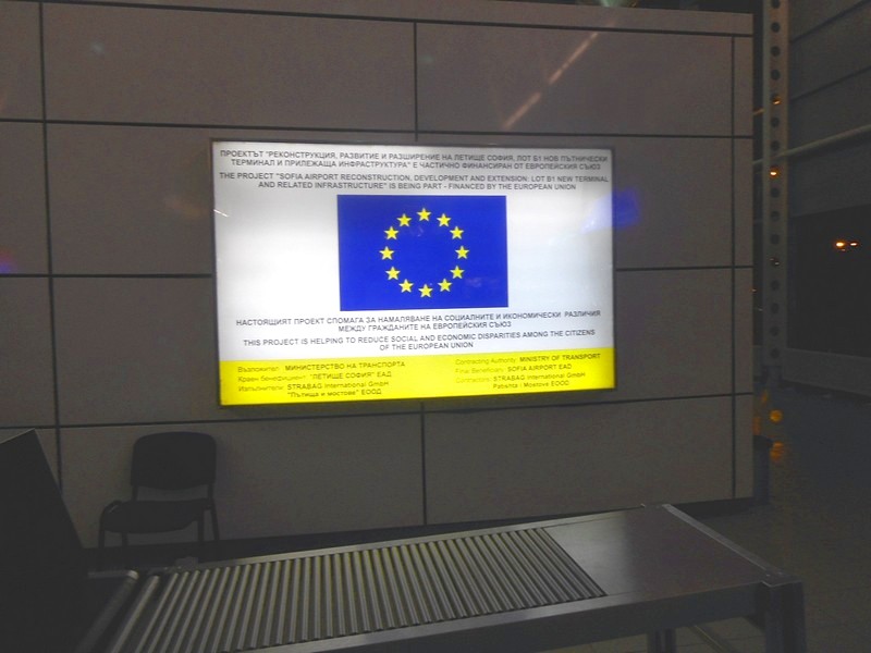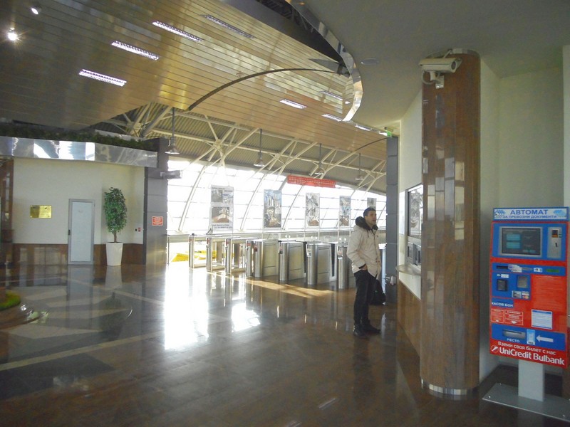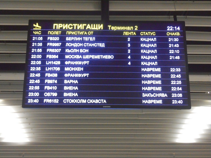 Летище София-Враждебна (да, такое название, хотя оно и не вывешено нигде). Погранконтроль пройден очень быстро и без вопросов. Странное ощущение, когда вокруг все надписи на первый взгляд на русском языке, и только по ряду признаков определяемо, что нет. (На самом деле болгарский язык отличается от русского значительно сильнее, чем украинский и белорусский, взаимопонимание без подготовки невозможно).