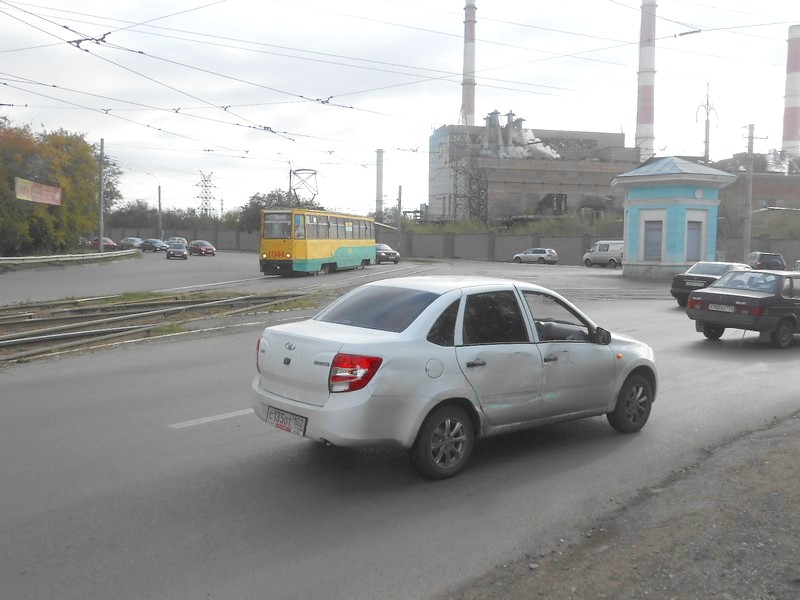 Вагон помял автомобиль очередного "автопридурка". Теперь - ожидание ГАИ, оформление. Примерно 30 минут простоя линии, это в лучшем случае. А пассажирам - пешком или на маршрутку. Деньги за проезд не возвращаются.