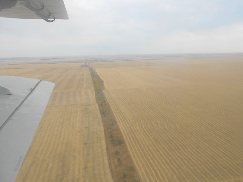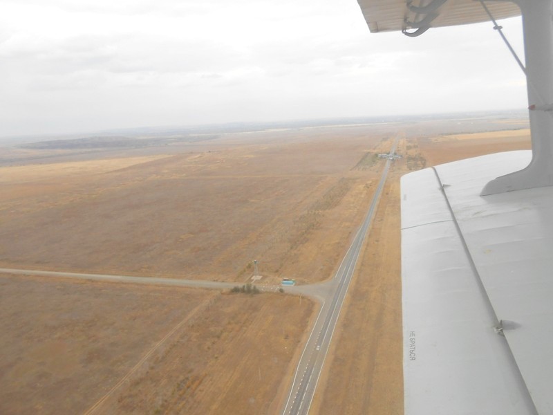 В Оренбурге АН-2 взлетал с нормальной полосы. А здесь, видимо, считают, что "воздушному трактору" бетон противопоказан. Съезжаем с асфальта в жёлтую сухую траву и с неё, поднимая пыль, почти моментально вверх.