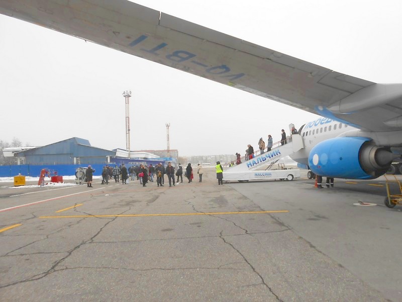 Полёт над облачностью от начала до конца. Погода в Нальчике — ужасная. Столь же холодно и снежно, как и в Москве.