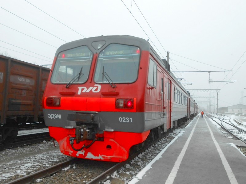 Станция Минеральные Воды. Электропоезд ЭД9МК-0061 на Краснодар. Длина маршрута — 390 километров!