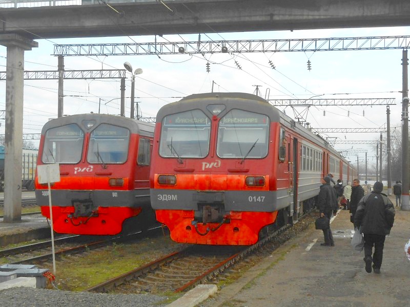 Станция Краснодар. Электропоезд ЭД9М-0233 прибыл из Усть-Лабинской.